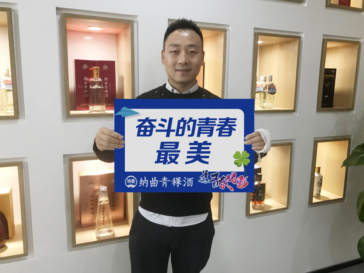 站在纳曲青稞酒陈列前方,衣冠整齐,笑容真诚,手拿纳曲青稞酒主题看板。不符合要求的照片后台则直接删除。