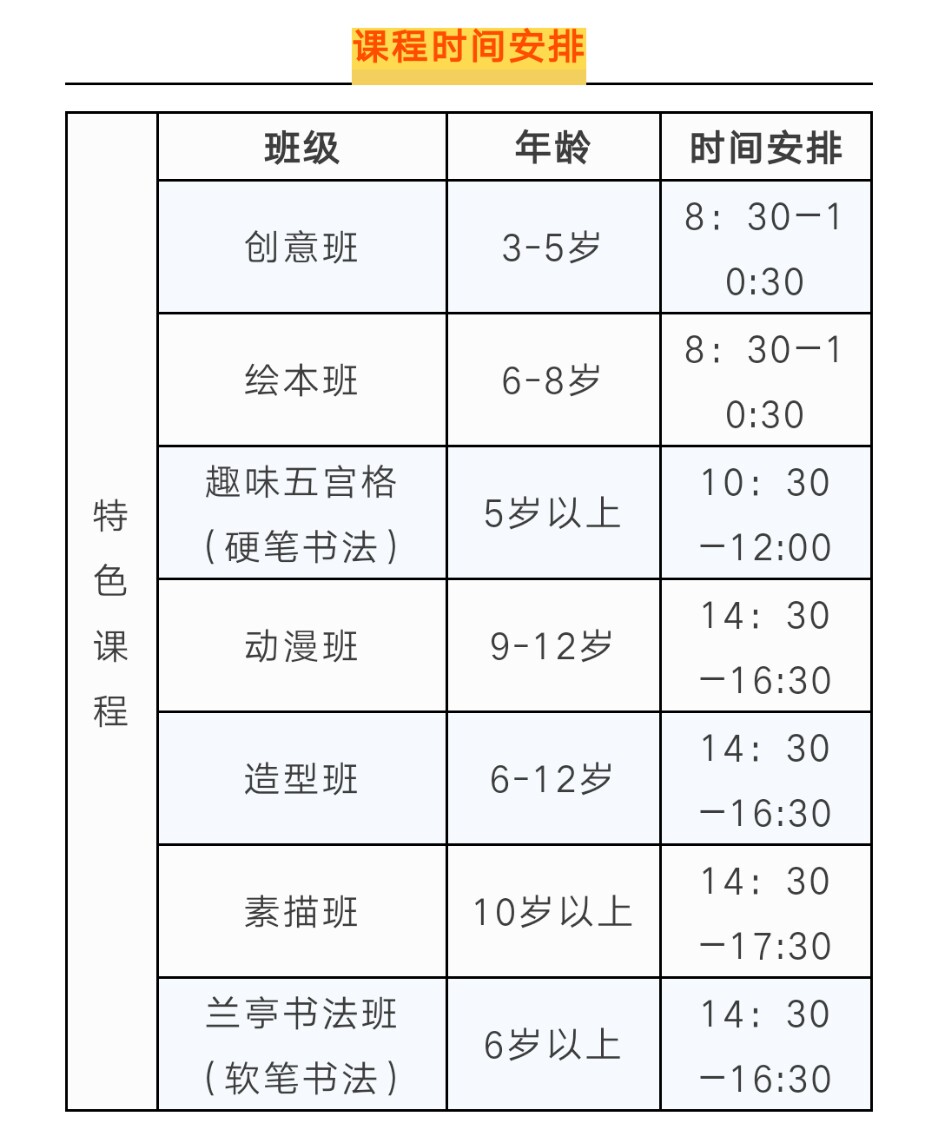 多种主题课程,多个时段任选