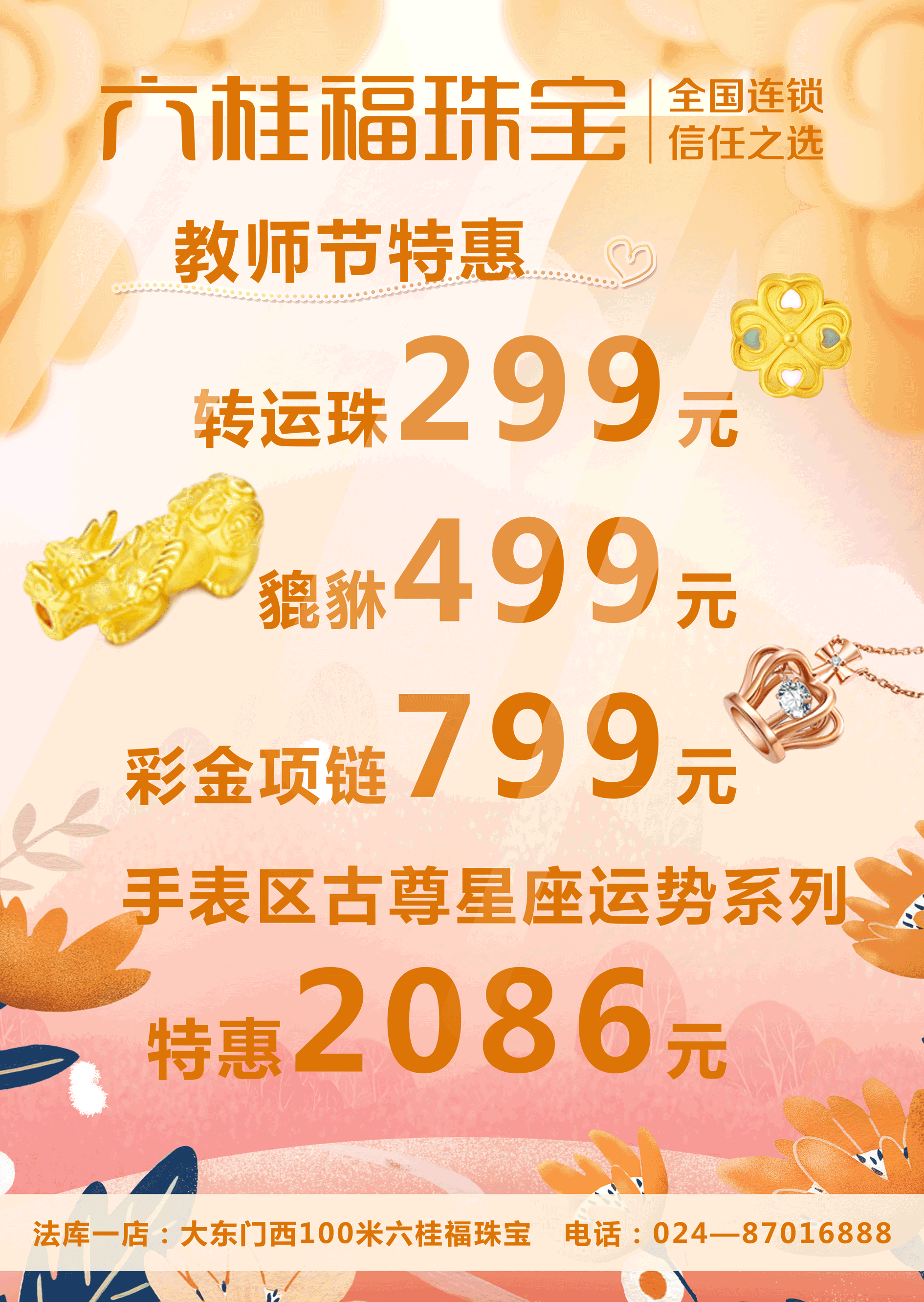 门店地址:法库六桂福珠宝一店 大东门西100米