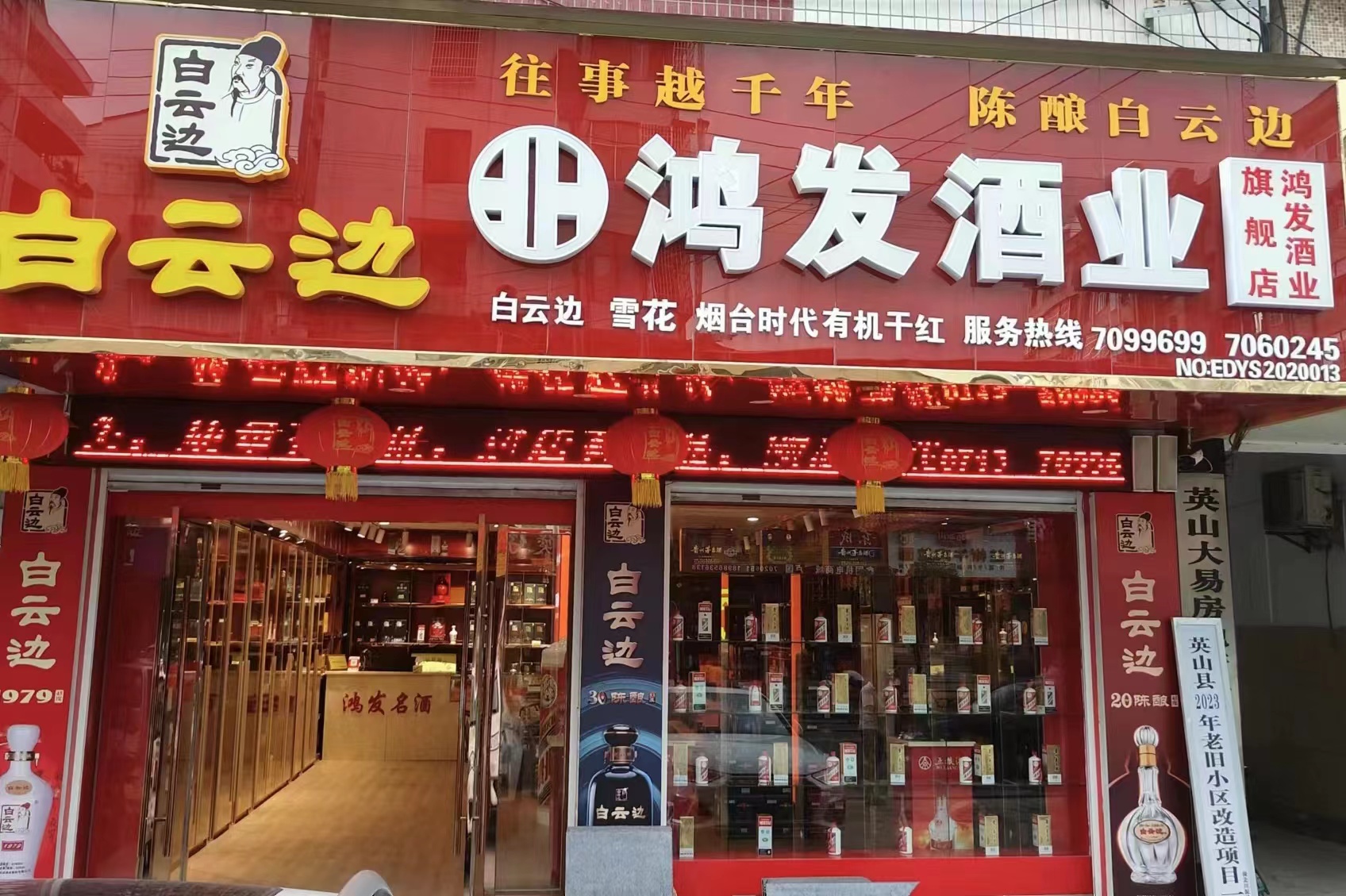 鸿发白云边旗舰店地址:新街水果市场斜对面农商行隔壁